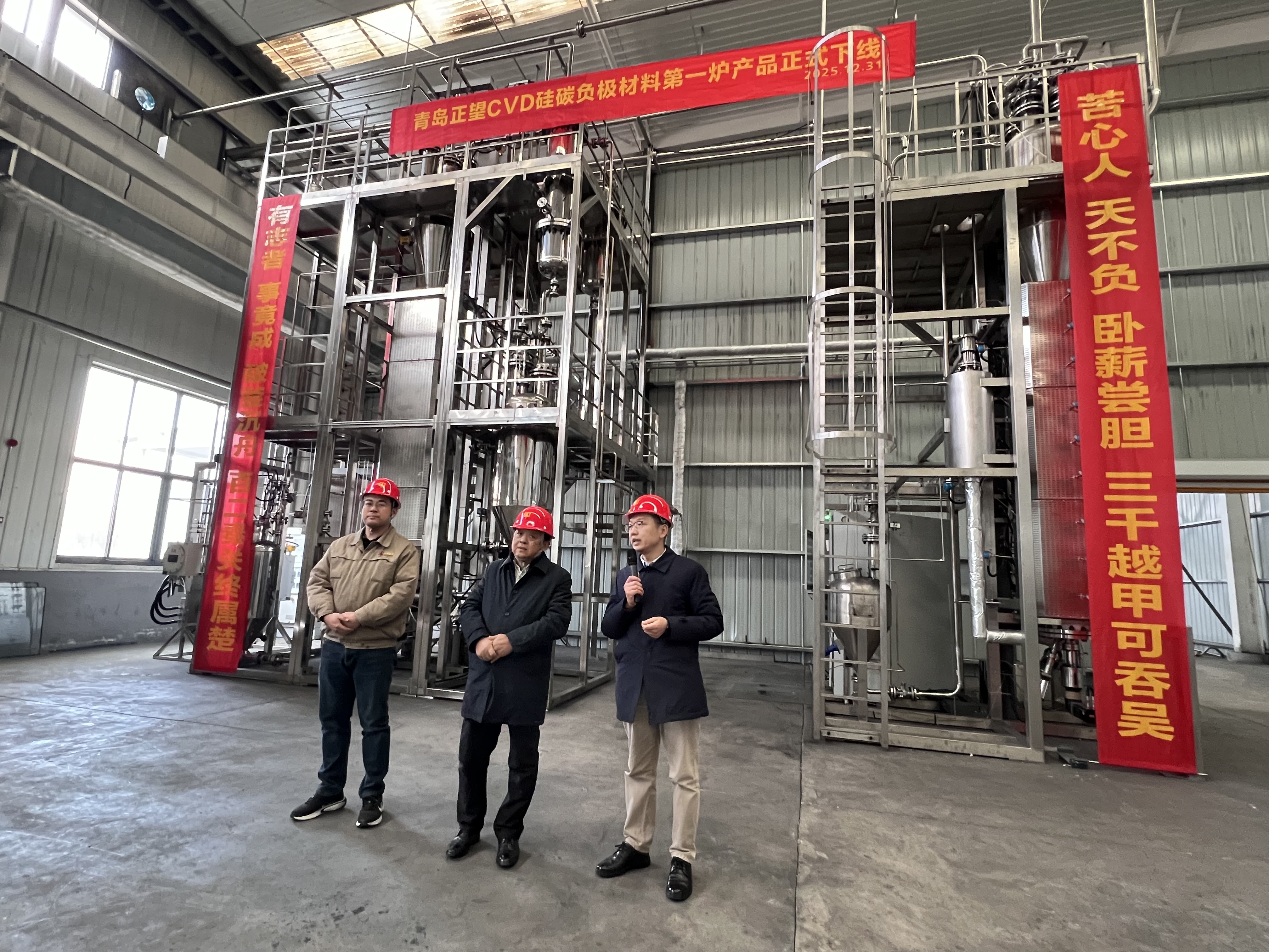2025年12月31日,青岛正望新材料股份有限公司CVD硅碳负极材料第一炉产品在青岛工厂正式下线!