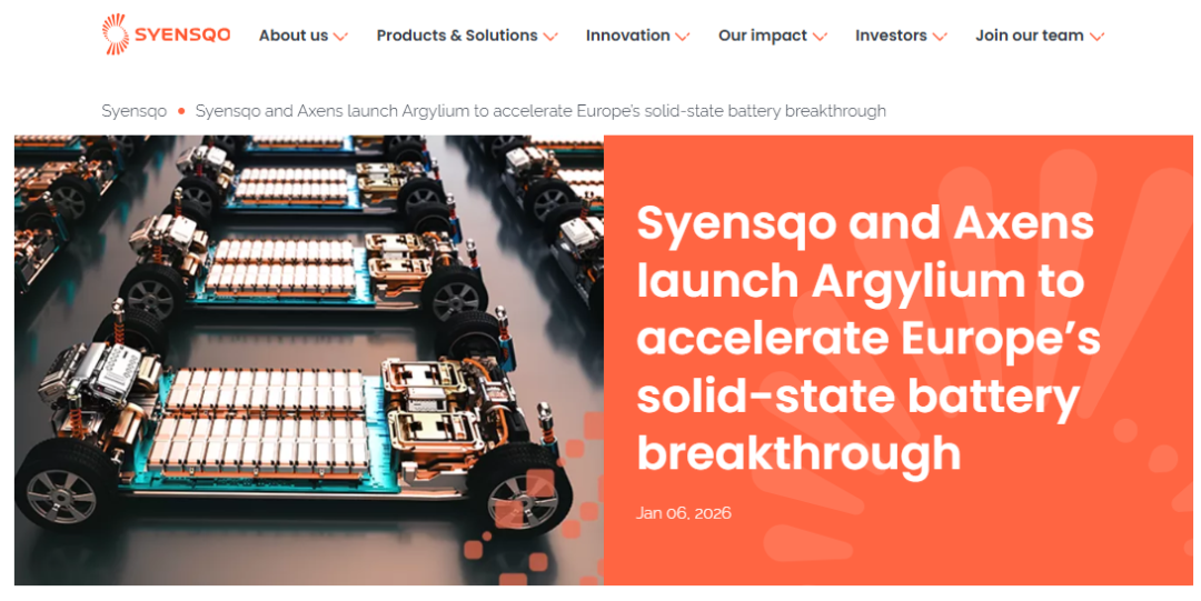 1月6日,世索科(Syensqo)与阿克森斯集团(Axens)宣布成立阿吉利姆公司(Argylium),这家新组建的企业致力于推动欧洲固态电池先进材料的研发及工业化规模验证。