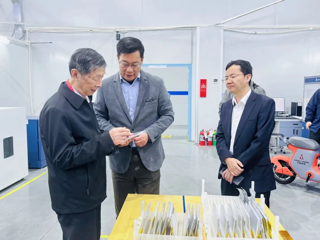 陈院士一行参观了公司中试产线。公司创始人兼首席科学家郭新教授携核心团队向陈院士详细汇报了技术研发、中试转化及产业布局情况,重点展示了固态电解质制备工艺与电池性能测试数据。